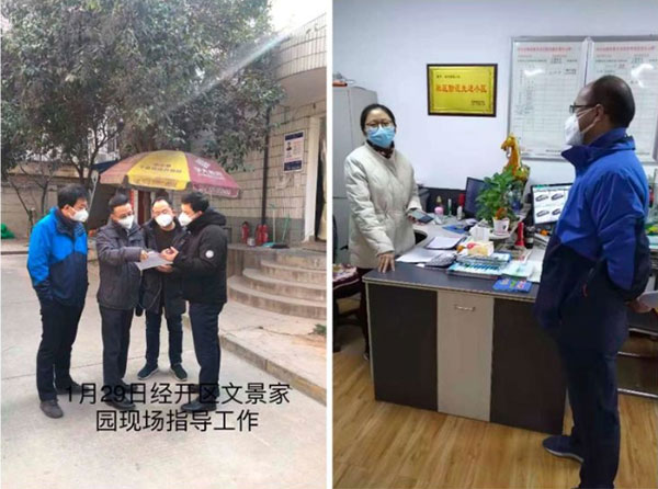 倡议一出,经发地产全体员工莫不响应,即刻组建了10人组成的疫情防控支援组。下午,支援组即赴经开区城市雅苑、文景家园、金堆城小区等地,协助小区物业开展全面排查,并进行物资协调工作。为把好防控关,切实做好统计协调工作,28日晚上十点,支援组成员常新举、刘栋才从负责小区回到家。