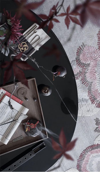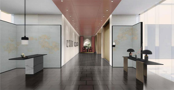 白桦林溪设计灵感来源《长物志》中曰“芙蓉宜植池岸,临水为佳,若他处植之,绝无丰致”。当迈入白桦林溪展示区的一刻,随之映入眼帘的,正是地上那充满金属感的芙蓉花主题地刻。走入知遇茶室内,接待前厅处的绢布背景上绣制的,也是大朵的芙蓉花。其它如地毯、沙发背椅、靠垫、悬吊绢画等多处,皆能看到芙蓉花的身影,其雍容华贵的绰绰影姿与知遇茶室整体的清丽淡雅十分契合。将设计元素应用至项目销售中心的软装布置中,并精心绘制花朵纹样,全面融入展示示范区的生活场景里,盛放如白桦林溪般的优雅别致的生活气息。