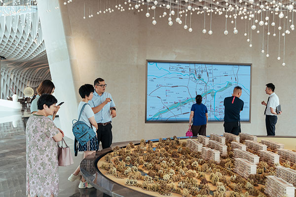 白桦林漫步展示区也为项目引流不少,其设计灵感来自于宋代诗人梅尧臣“林空鹿饮溪”,融合泾河新城的“水”和西安城墙的“墙”元素,创造出一个空灵、静谧又充满文化感的场所。