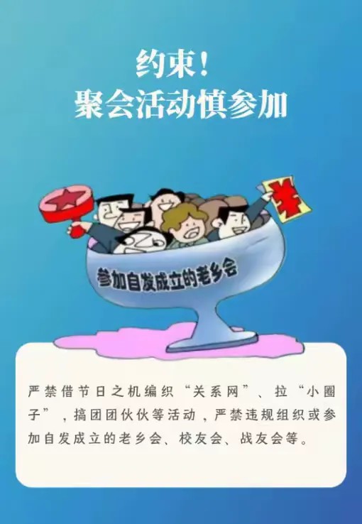2025年元旦、春节将至,为深入贯彻落实党的二十大、二十届三中全会精神,持续巩固拓展落实中央八项规定精神成果,以严的基调强化正风肃纪,坚定不移纠“四风”、树新风,现将有关纪律提醒如下: